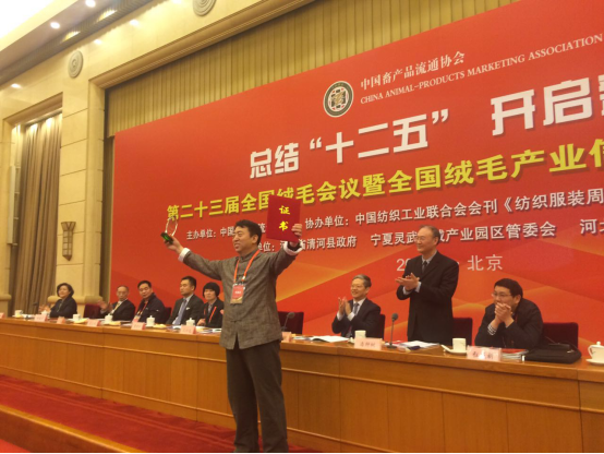 會議舉行首日,全國絨毛產(chǎn)業(yè)信用共建聯(lián)盟成立,并召開了“共論新經(jīng)濟、共謀新發(fā)展”行業(yè)峰會。中國畜產(chǎn)品流通協(xié)會聯(lián)合相關(guān)協(xié)會和媒體對畜產(chǎn)品行業(yè)“十二五”期間中國羊絨、羊毛行業(yè)優(yōu)秀人物以及五十強企業(yè)進行了評薦和公布,同時還總結(jié)和展示了“十二五”期間絨毛行業(yè)取得的優(yōu)秀成果,與京東商城、Intertek-天祥集團簽訂戰(zhàn)略合作協(xié)議書。協(xié)會會員單位在本次表彰活動中收獲頗豐,其中,鄂爾多斯投資控股集團有限公司副總裁王臻、內(nèi)蒙古鹿王羊絨有限公司董事長鄭浩生、維信(內(nèi)蒙古)羊絨集團有限公司郝續(xù)寬獲得“十二五”期間中國羊絨行業(yè)十大領(lǐng)軍人物獎;鄂托克旗伊吉汗羊絨制品有限責(zé)任公司王有志、維信(內(nèi)蒙古)羊絨集團有限公司生產(chǎn)部長王挨區(qū)、內(nèi)蒙古米真絨毛紡織有限責(zé)任公司董事長李臻、赤峰東黎絨毛制品有限公司董事長程旭東獲“十二五”期間中國羊絨行業(yè)突出貢獻人物稱號;維信(內(nèi)蒙古)羊絨集團有限公司的維信牌系列羊絨制品、內(nèi)蒙古鹿王羊絨有限公司的鹿王牌羊絨制品分別獲得“十二五”期間中國羊絨行業(yè)最具市場價值產(chǎn)品稱號;內(nèi)蒙古鹿王羊絨有限公司、內(nèi)蒙古米真絨毛紡織有限責(zé)任公司獲得“十二五”期間中國絨毛行業(yè)科技創(chuàng)新獎;內(nèi)蒙古牧王畜產(chǎn)品股份有限公司獲得“十二五”期間中國國產(chǎn)羊毛流通行業(yè)優(yōu)秀龍頭企業(yè)稱號;內(nèi)蒙古鄂爾多斯資源股份有限公司、內(nèi)蒙古鹿王羊絨有限公司、維信(內(nèi)蒙古)羊絨集團有限公司、內(nèi)蒙古春雪羊絨有限公司、鄂托克旗伊吉汗羊絨制品有限責(zé)任公司、內(nèi)蒙古米真絨毛紡織有限責(zé)任公司、赤峰東榮羊絨制品有限公司、赤峰東信絨毛制品有限公司、赤峰凱蘭羊絨制品有限公司為“十二五”期間中國羊絨行業(yè)五十強企業(yè);維信(內(nèi)蒙古)羊絨集團有限公司、內(nèi)蒙古米真絨毛紡織有限責(zé)任公司、鄂托克旗伊吉汗羊絨制品有限責(zé)任公司獲2015年度中國絨山羊優(yōu)秀種源地稱號;內(nèi)蒙古鄂爾多斯資源股份有限公司、內(nèi)蒙古鹿王羊絨有限公司、維信(內(nèi)蒙古)羊絨集團有限公司、內(nèi)蒙古春雪羊絨有限公司、鄂托克旗伊吉汗羊絨制品有限責(zé)任公司、內(nèi)蒙古米真絨毛紡織有限責(zé)任公司、赤峰東榮羊絨制品有限公司、赤峰東信絨毛制品有限公司、赤峰凱蘭羊絨制品有限公司為2015年度中國行業(yè)綜合實力五十強企業(yè)。