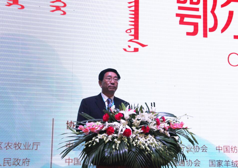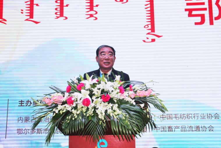 協(xié)會(huì)副會(huì)長(zhǎng)單位、鄂爾多斯羊絨集團(tuán)董事長(zhǎng)王林祥發(fā)言