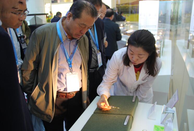內(nèi)蒙古農(nóng)牧業(yè)產(chǎn)業(yè)化龍頭企業(yè)協(xié)會(huì)執(zhí)行會(huì)長(zhǎng)兼秘書(shū)長(zhǎng)林永亮觀看企業(yè)介紹新納米技術(shù)