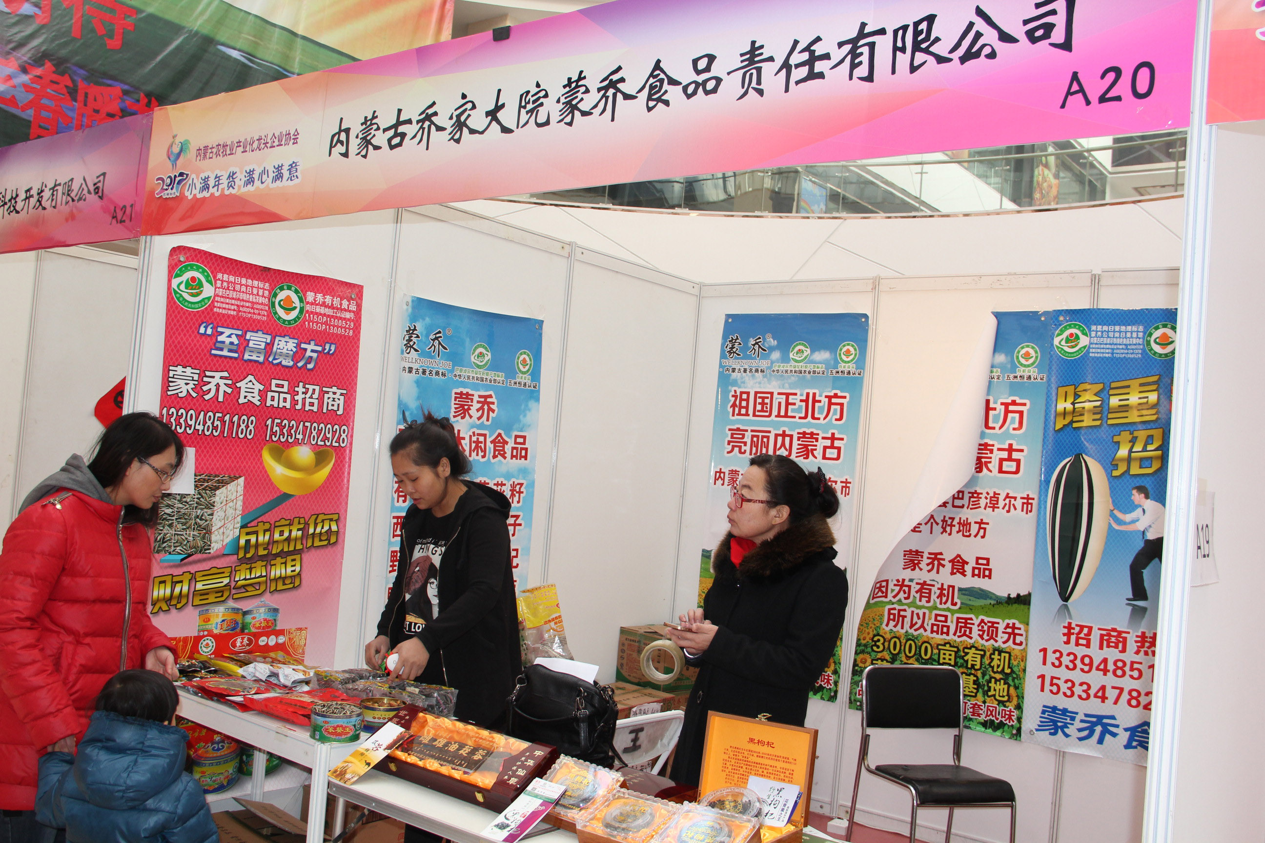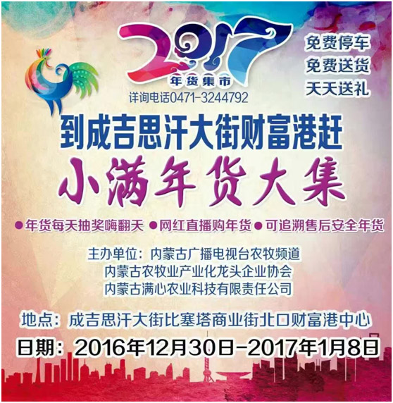 1230日,經(jīng)過精心籌備策劃的內(nèi)蒙古廣播電視臺(tái)農(nóng)牧頻道小滿年貨大集終于精彩亮相青城與廣大市民群眾見面了。年貨大集現(xiàn)場(chǎng),140家參展企業(yè)上千種產(chǎn)品競(jìng)相亮相,本次活動(dòng)由內(nèi)蒙古農(nóng)牧業(yè)產(chǎn)業(yè)化龍頭企業(yè)協(xié)會(huì)攜手內(nèi)蒙古廣播電視臺(tái)農(nóng)牧頻道和內(nèi)蒙古滿心農(nóng)業(yè)科技有限責(zé)任公司共同打造,搭建一個(gè)展示企業(yè)形象、宣傳地方產(chǎn)品、溝通產(chǎn)銷渠道、擴(kuò)大消費(fèi)需求、活躍節(jié)日市場(chǎng)的經(jīng)濟(jì)平臺(tái),營(yíng)造溫馨舒適、品種齊全、質(zhì)優(yōu)價(jià)廉、安全可靠、熱鬧紅火的節(jié)日購(gòu)物氛圍,讓全區(qū)老百姓不用東奔西走就能購(gòu)買到內(nèi)蒙古的新鮮蔬菜、瓜果、乳肉、糧油等特色農(nóng)畜產(chǎn)品,采購(gòu)到豐富的鄉(xiāng)土年貨、進(jìn)口食品、日用副食等,豐富首府百姓的菜籃子。