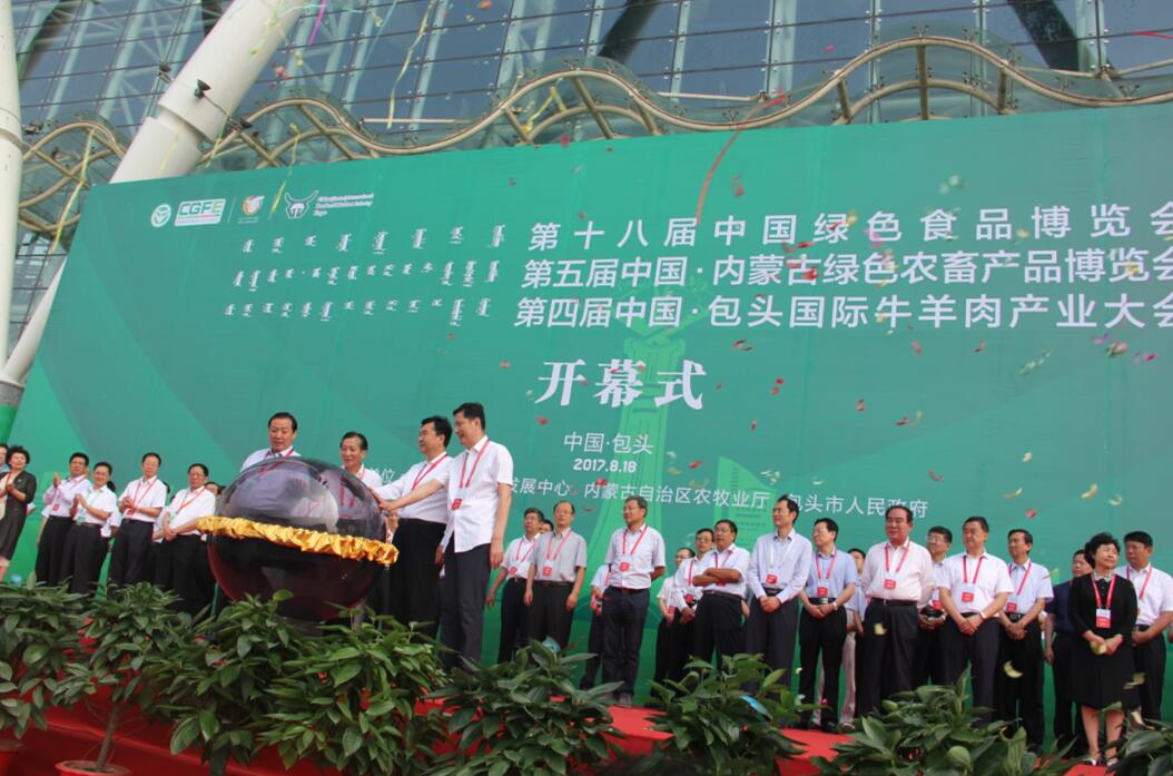 盛夏時節(jié)的包頭風輕云淡,818日,第十八屆中國綠色食品博覽會、第五屆中國·內(nèi)蒙古綠色農(nóng)畜產(chǎn)品博覽會、第四屆中國·包頭國際牛羊肉產(chǎn)業(yè)大會在內(nèi)蒙古包頭市國際會展中心拉開帷幕。農(nóng)業(yè)部原副部長、中國綠色食品協(xié)會會長陳曉華,農(nóng)業(yè)部總畜牧師馬愛國,自治區(qū)黨委常委、包頭市委書記張院忠,內(nèi)蒙古自治區(qū)人民政府副主席白向群,內(nèi)蒙古自治區(qū)農(nóng)牧業(yè)廳廳長郭健等出席開幕式。