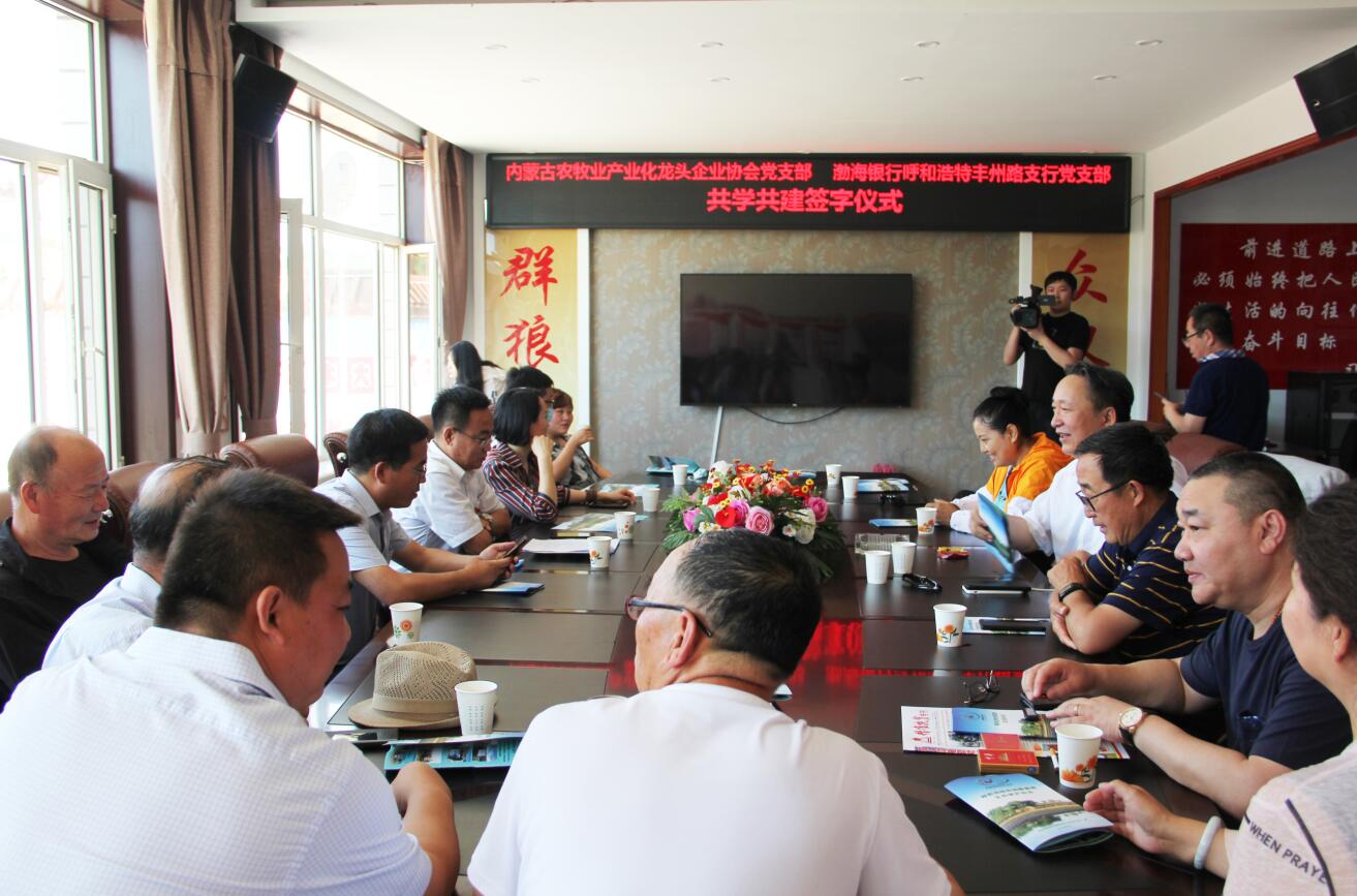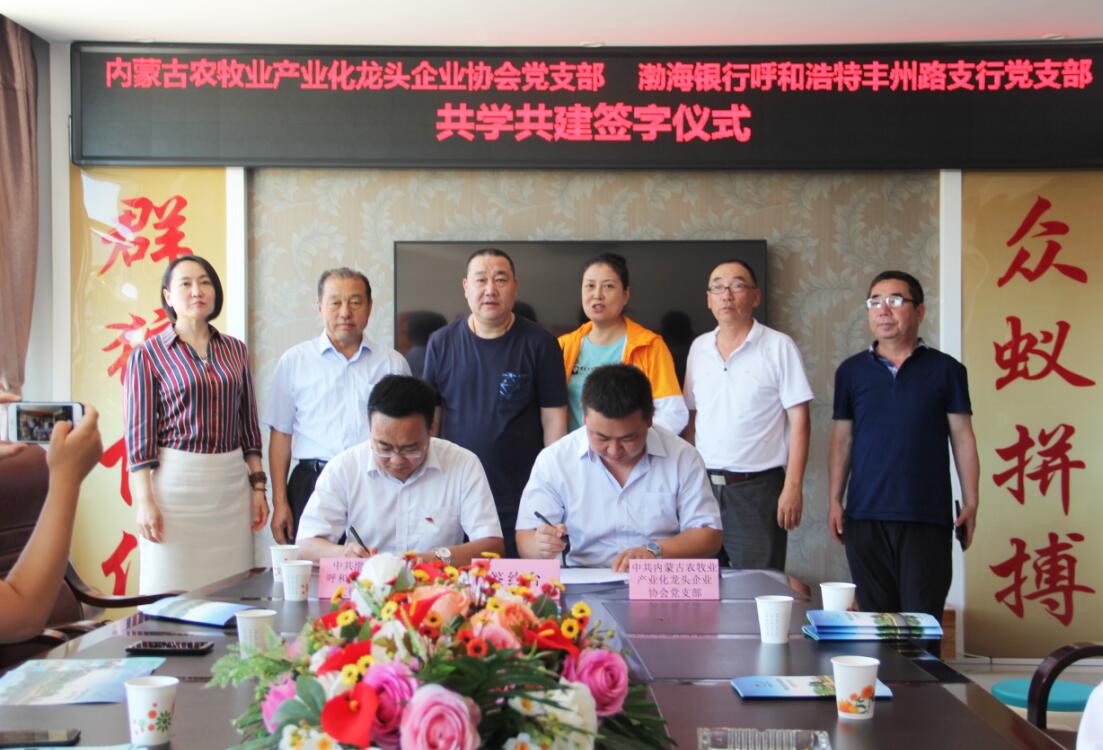 活動過程中,為創(chuàng)造性地推進黨組織“共學共建”結(jié)對工作,圍繞新時代黨的建設總要求,內(nèi)蒙古農(nóng)牧業(yè)產(chǎn)業(yè)化龍頭企業(yè)協(xié)會黨支部和渤海銀行呼和浩特豐州路支行黨支部簽訂了《共學共建結(jié)對協(xié)議》。通過結(jié)對共建,在弘揚社會正能量、加強愛國主義教育等方面樹立新典型,力爭在構建銀企合作關系等方面取得新突破。