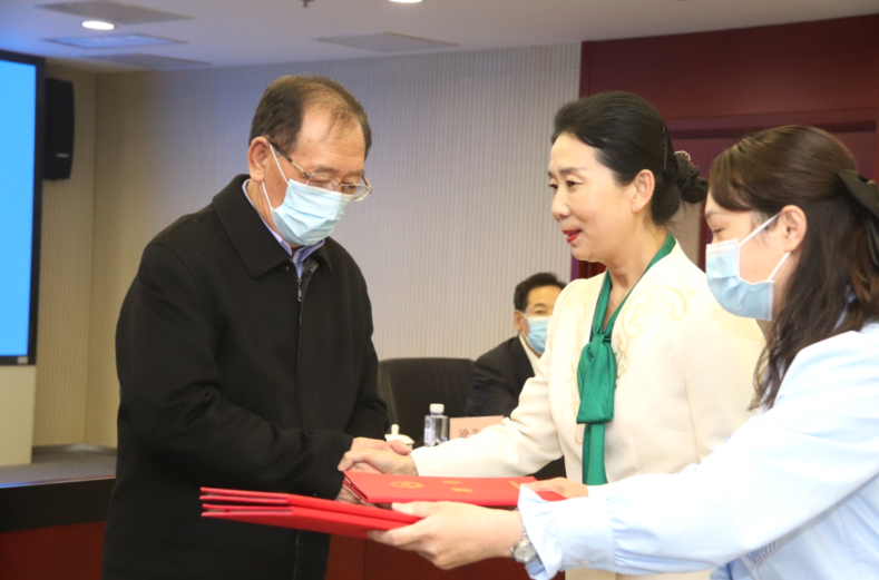 內(nèi)蒙古自治區(qū)黨委統(tǒng)戰(zhàn)部副部長(zhǎng)、工商聯(lián)黨組書記梁淑琴為副主任頒發(fā)聘書