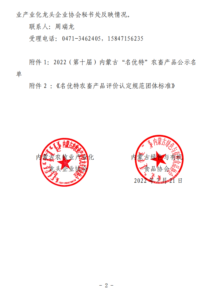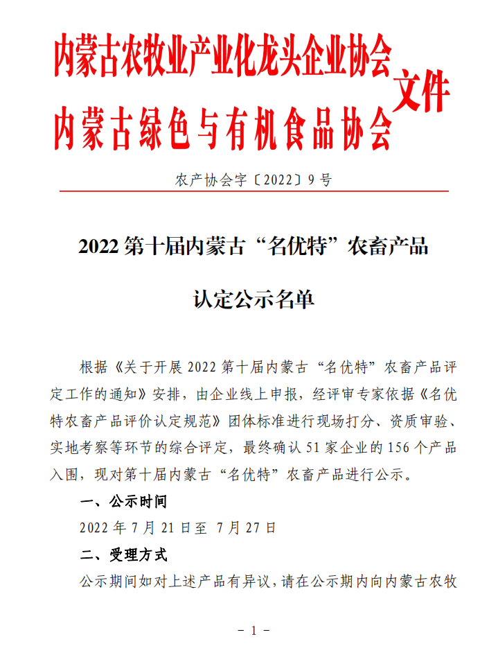 標(biāo)題:2022第十屆內(nèi)蒙古“名優(yōu)特”農(nóng)畜產(chǎn)品認定公示名單
