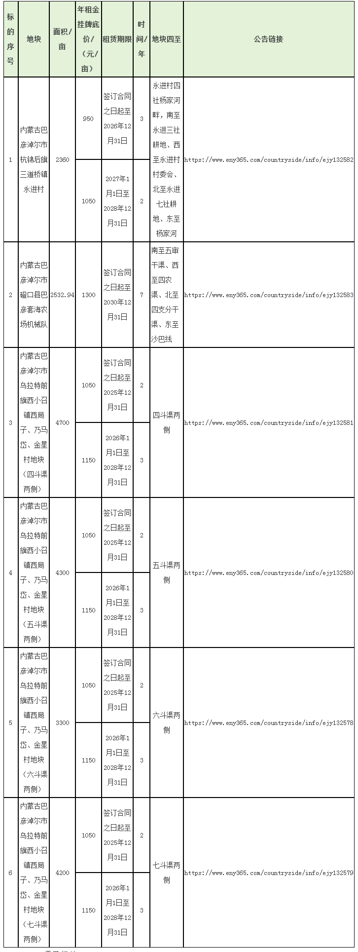 巴彥淖爾市農(nóng)墾(集團(tuán))有限公司6宗耕地出租