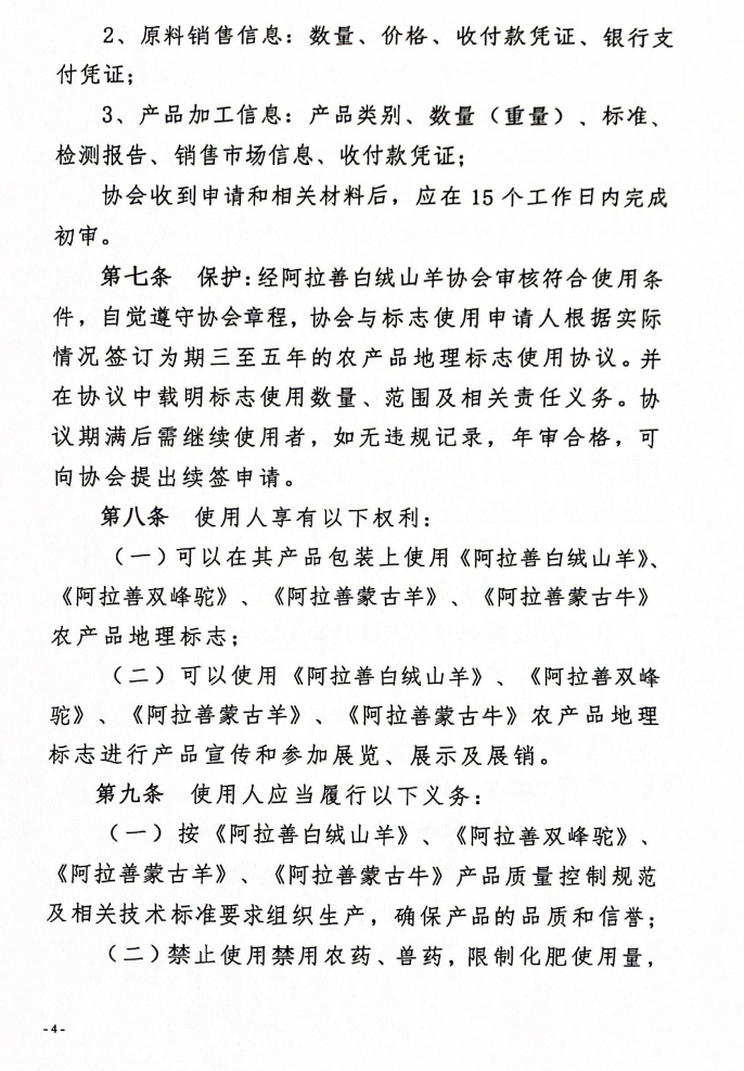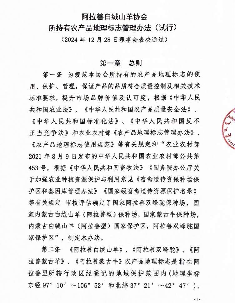 阿拉善白絨山羊協(xié)會(huì)所持有農(nóng)產(chǎn)品地理標(biāo)志管理辦法(試行)