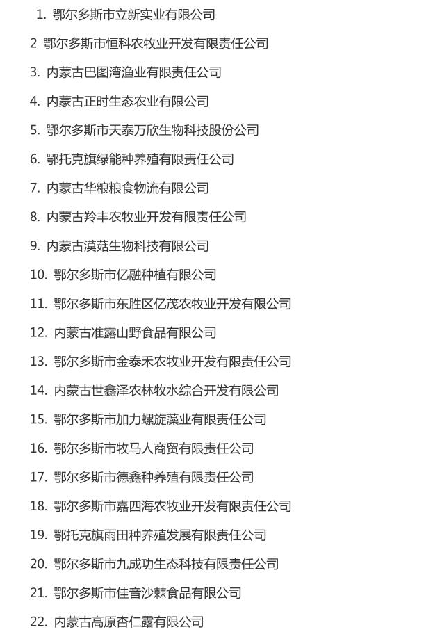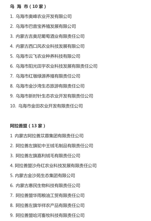 企業(yè)名稱(chēng):截止2016年末自治區(qū)級(jí)農(nóng)牧業(yè)產(chǎn)業(yè)化 重點(diǎn)龍頭企業(yè)名單​
