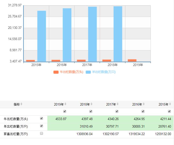 2020年前三季度內(nèi)蒙古經(jīng)濟運行情況新聞發(fā)布會上新聞發(fā)言人夏榮華提到畜牧業(yè)生產(chǎn)逐步恢復(fù)。豬牛羊禽四肉產(chǎn)量同比下降2.3%,降幅較上半年收窄2.3個百分點。其中,豬肉產(chǎn)量45.4萬噸,下降2.6%,降幅較上半年收窄6.7個百分點;牛肉產(chǎn)量38.2萬噸,下降2.0%,降幅較上半年擴大0.4個百分點;羊肉產(chǎn)量71.0萬噸,下降2.4%,降幅與上半年持平。禽蛋產(chǎn)量35.1萬噸,增長4.2%。