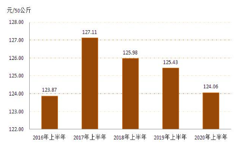 1.小麥:1、2月份春節(jié)假期疊加新冠肺炎疫情,糧企停工停產(chǎn),市場交易趨于平淡,小麥?zhǔn)召弮r(jià)格整體穩(wěn)定。3月份之后,隨著新冠肺炎疫情得到有效控制,各地復(fù)工復(fù)產(chǎn)復(fù)學(xué)的大范圍推進(jìn),截止12月份全區(qū)小麥每50公斤平均收購價(jià)格為124.06元,同比下降1.09%,詳見圖3。(來源:內(nèi)蒙古自治區(qū)發(fā)展和改革委員會)